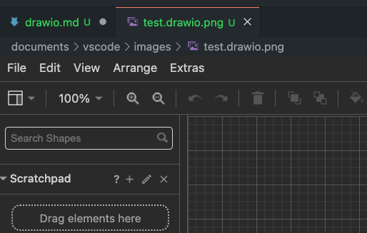 xxxx.drawio파일명으로 파일을 생성하면 vscode에서 draw.io editor를 보여주게 된다!